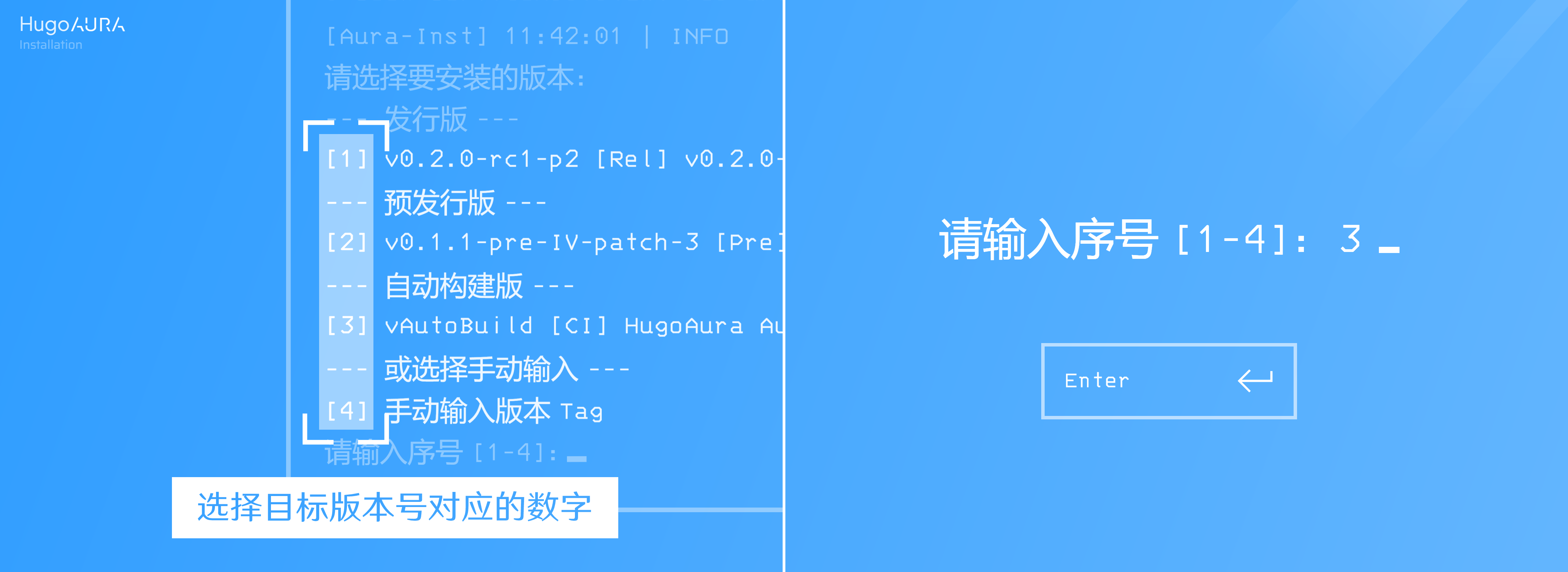 - 选择您希望安装的版本号 (一般推荐使用 CI 版, 与一般软件不同, HugoAura-Main 的稳定版 (发行版) 不一定能良好兼容最新版管家)
