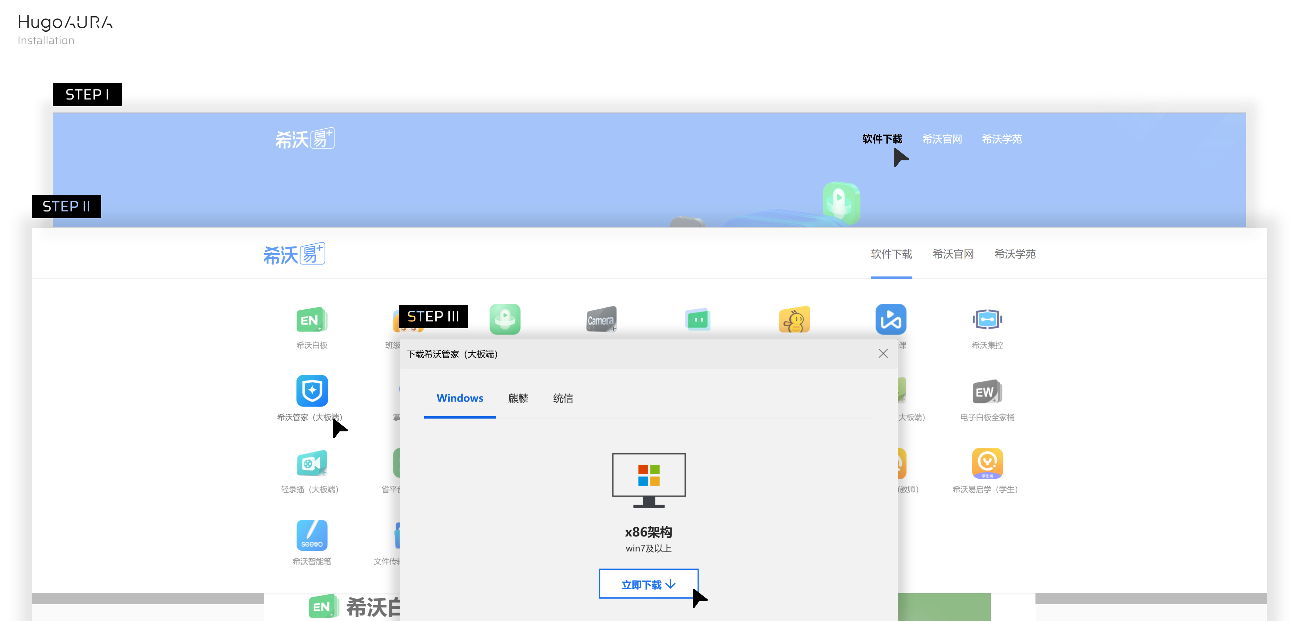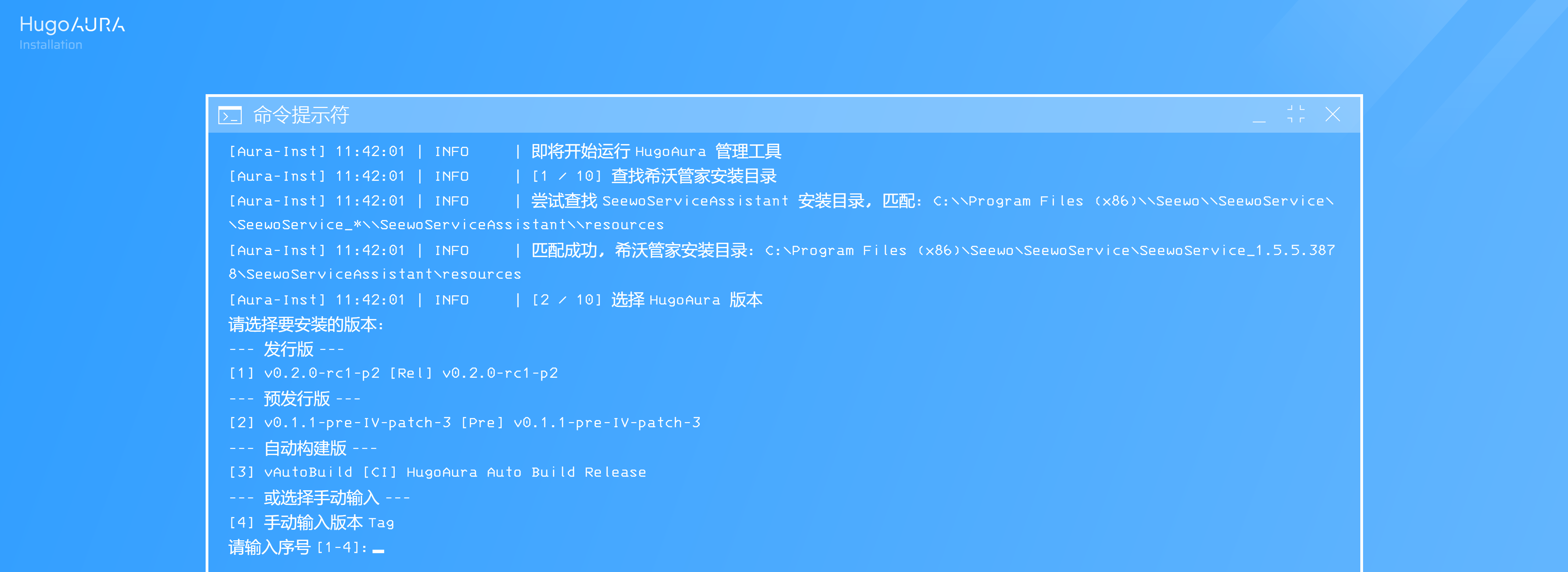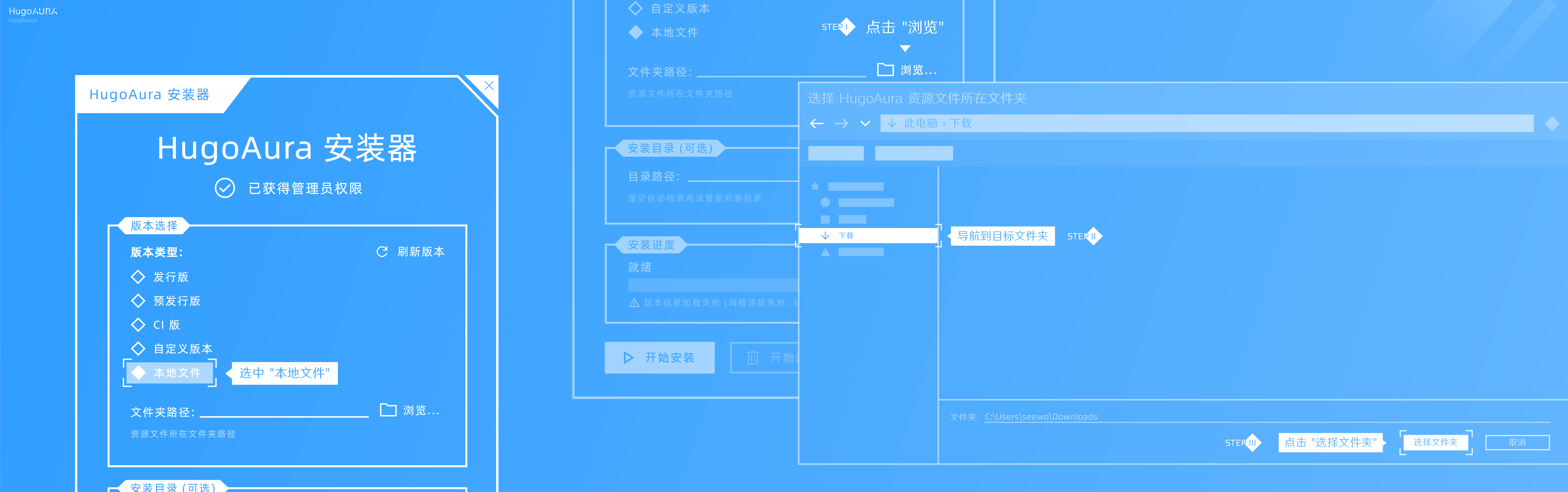 针对 Windows 10+ 用户, HugoAura Install 提供了友好的图形化界面供您执行操作。